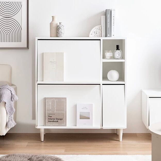 フラップ扉で生活感を隠しておしゃれに魅せるキャビネット。