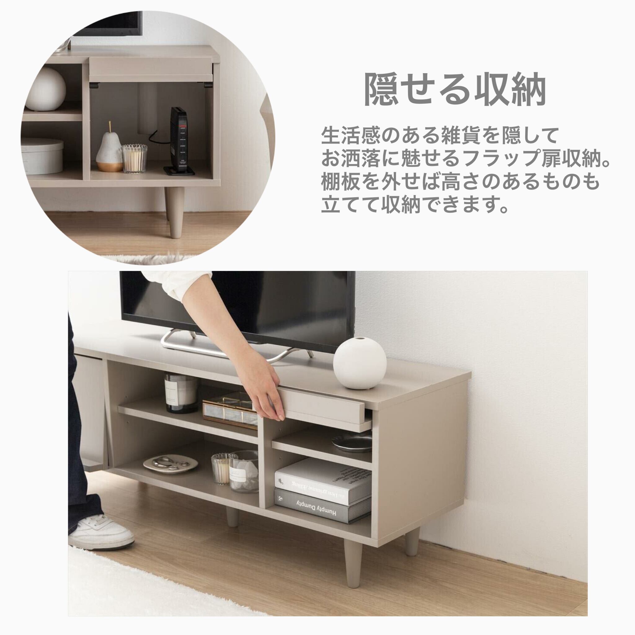 フラップ扉で生活感を隠しつつ、おしゃれに見せるコンパクトサイズのフラップ扉テレビ台。