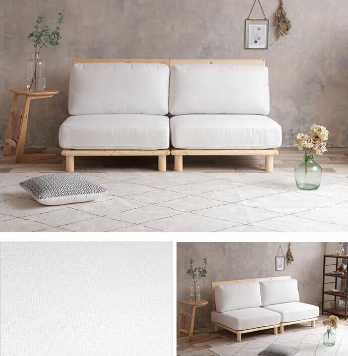 天然木フレームと清潔感溢れるファブリック素材の組み合わせがお洒落なローソファー。