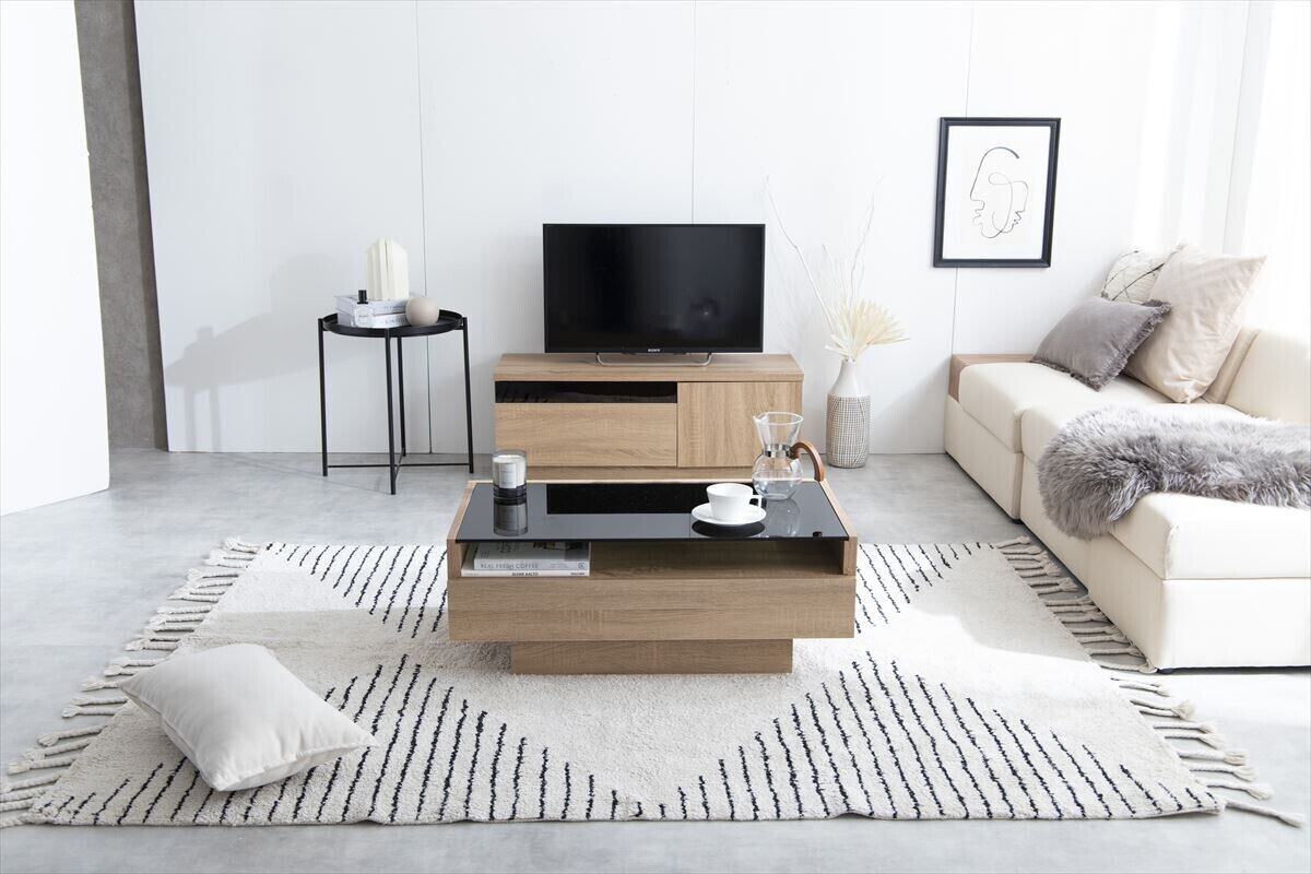 天板下のオープンスペースにはリモコンなどよく使うものを、引き出し収納にはごちゃごちゃしがちな細かいものをしまって日々の生活をより快適に。