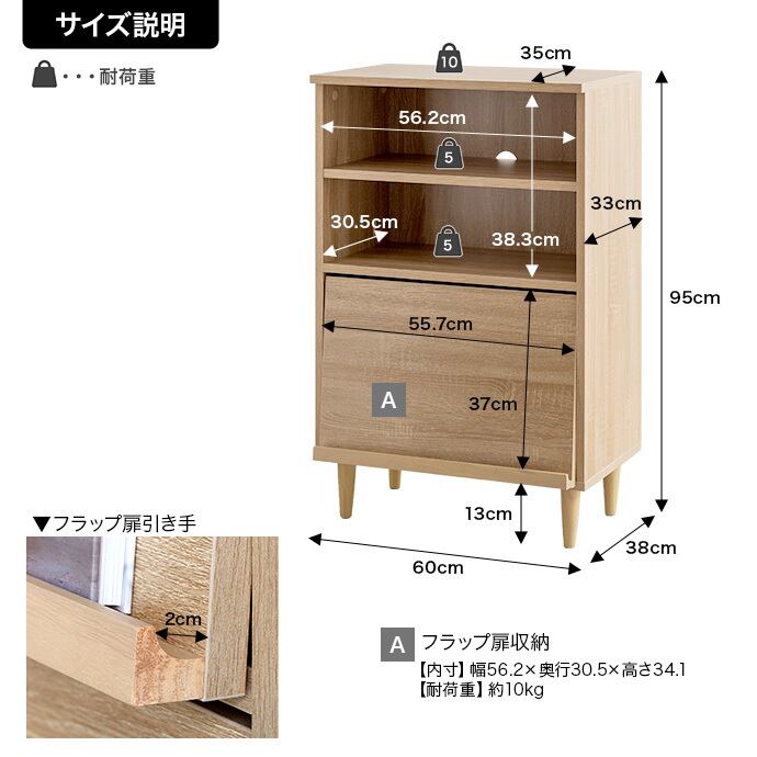 【送料無料】フラップ扉付きキャビネット/ブラウン 幅60センチ