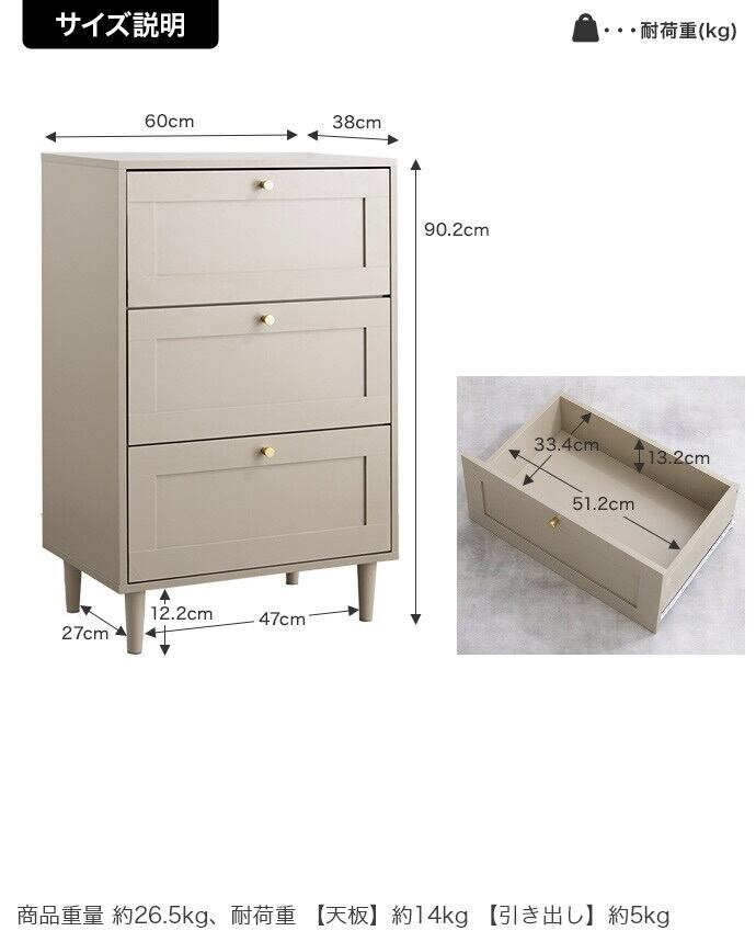 また、スライドレール仕様で最大25.3cmまで引き出すことができ、奥にある物の取り出しも楽々。重みの増した引き出しも軽い力で開閉することが可能です。